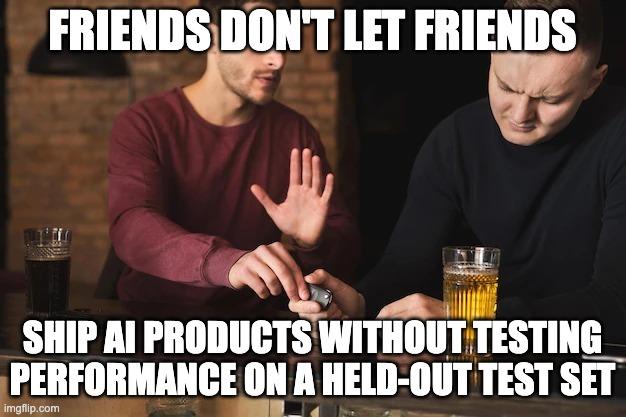 | Use a held-out test set to estimate generalization performance | Ship AI products without held-out testing |